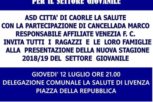 L’ASD Città di Caorle-La Salute comunica ufficialmente di aver confermato per la stagione 2018-2019 il centrocampista Nicolò Marsonetto. Arrivato la…